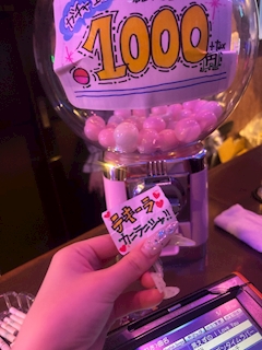 りまだよ🎀 出勤しましたー! 昨日はお休みで赤羽のバーに飲み行ってきました! そこに1000円ガチャがあったので引いてみたら、、、 テキーラ観覧車でした🎡🥳👏 朝まで飲んでいたので二日酔いでございます😵 今月はデネブでもガラポンやるので回してみてください🎡